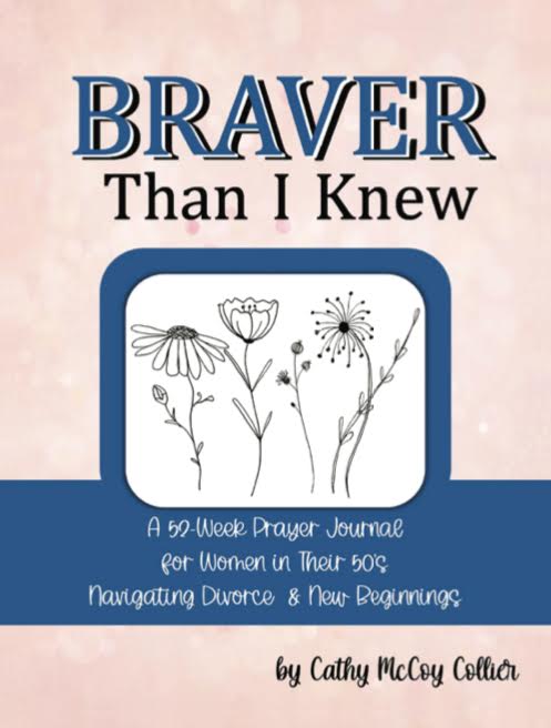 BRAVER THAN I KNEWby Cathy McCoy Collier Divorce and heartache can be devastating in any stage of life. In your fifties or sixties, however, divorce can bring unexpected and unfathomable challenges. Based on personal experiences of divorce at the age of fifty-eight, Cathy Collier provides a spiritual, self-reflective journal to help women push through and navigate this new chapter of their lives. This 52 week journey includes song lyrics, Bible verses, adult coloring sheets, reflection questions, and a gratitude list. This journal offers a safe space for persevering through any emotional life journey. |